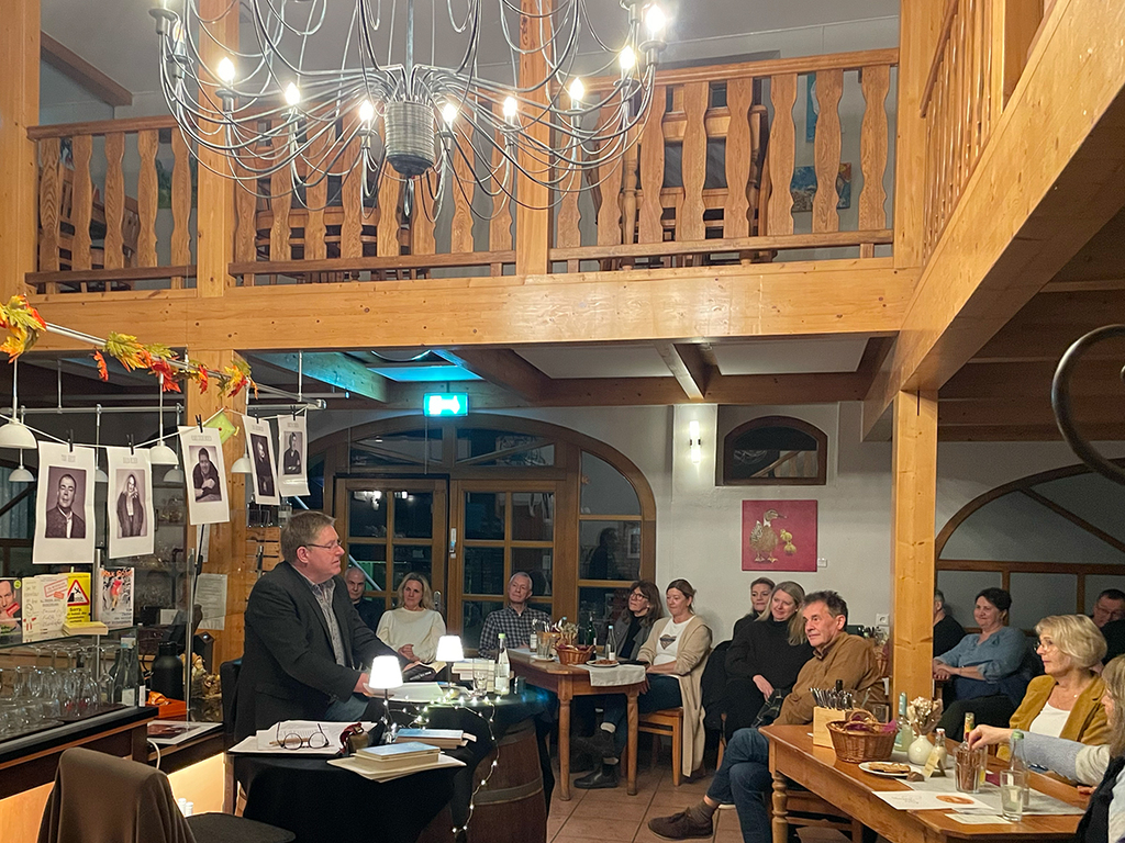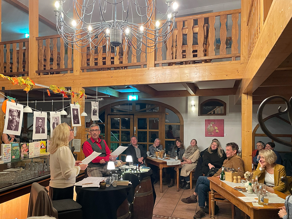 Es wurde Witziges aus verschiedenen Büchern vorgetragen. Im rundum ausverkauften Bistro des Stautenhofes.